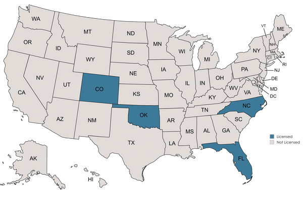 We are based in Colorado and licensed in Colorado, Florida, North Carolina and Oklahoma.